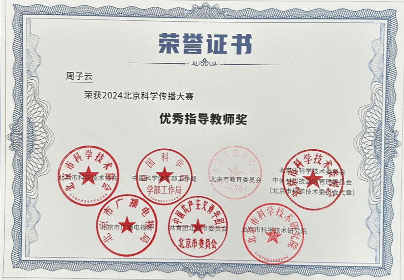 经评选,教师组全部4项作品均获北京市一等奖,其中教师张洁的作品还获全国一等奖、教师霍烺白的作品还获全国二等奖。