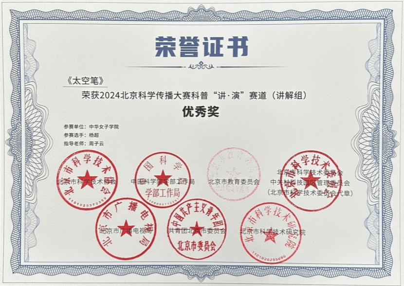 2024北京科学传播大赛是北京市科学传播领域的权威赛事,由北京市科学技术委员会、中国科学院学部工作局、北京市教育委员会、北京市科学技术委员会、中关村科技园区管理委员会、北京市广播电视局、共青团北京市委员会、北京市科学技术研究院主办,由北京科普发展与研究中心、北京科学中心、北京广播电视台、北京科学教育馆协会、北京科学技术普及创作协会承办,并得到北京高校科协联盟、国家动物博物馆、北京市少年宫、中关村科学城企业党委支持。赛事优秀作品云集,参赛面广,影响力大。必赢官网播音与主持艺术专业2023级本科生杨超经过视频作品选送、现场即兴讲解等环节,在成人组一众科普经验丰富的选手中脱颖而出,以流畅、准确、生动的讲解晋级总决赛并获讲演赛道优秀奖。