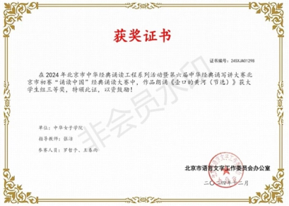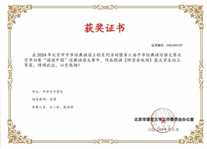 北京市中华经典诵读工程系列活动是中华经典诵读工程系列活动的重要组成部分。中华经典诵读工程是为深入贯彻习近平新时代中国特色社会主义思想和党的十九大精神,落实中共中央办公厅、国务院办公厅印发的《关于实施中华优秀传统文化传承发展工程的意见》,学习贯彻全国教育大会精神,切实发挥语言文字在传承发展中华优秀传统文化、革命文化和社会主义先进文化中的重要作用,教育部、国家语委开展的活动。它也是《中华优秀传统文化传承发展工程“十四五”重点项目规划》中的项目。2019年开始举办,至今第六届。播音与主持艺术专业届届参加,年年获奖。六年以来,共获奖近60项,年均获奖近10项,其中获奖师生获全国总决赛一等奖1次、全国优秀指导教师1次、全国总决赛三等奖2次、北京市一等奖6次。这既彰显了必赢官网播音与主持艺术专业国家级一流本科专业的专业人才培养实力,也充分体现了播音专业以中华优秀传统文化、革命文化、社会主义先进文化涵养青年学子的育人育德方面新作为、新成绩。