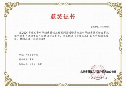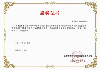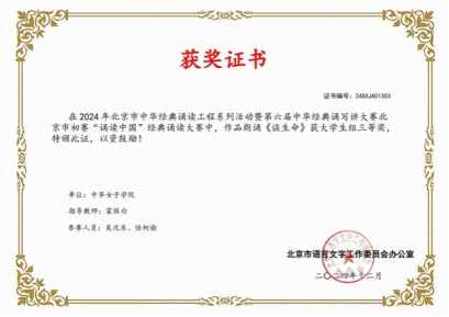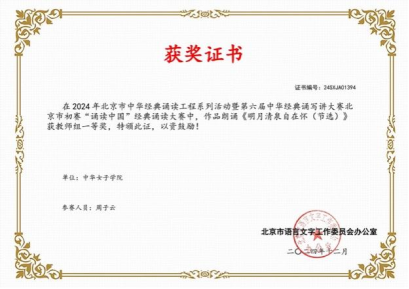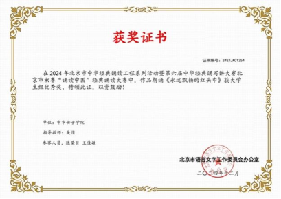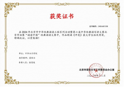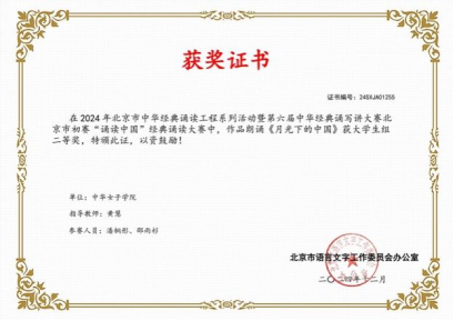 必赢官网播音与主持艺术专业佳音频传,喜报连发,在第六届中华经典诵读大赛北京市赛“诵读中国”大赛、2024北京科学传播大赛中取得佳绩,获得“诵读中国”大赛北京市教师组一等奖4项、大学生组二等奖2项、三等奖4项、优秀奖7项;获得2024北京科学传播大赛优秀组织奖1项、优秀指导教师奖1项、“讲·演“(讲解组)优秀奖1项。