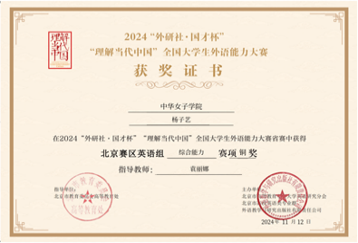 英语组综合能力北京赛区决赛 | 杨子艺 | 北京市铜奖 | 应用心理学 | 2023 | 本科生 | 袁丽娜 |