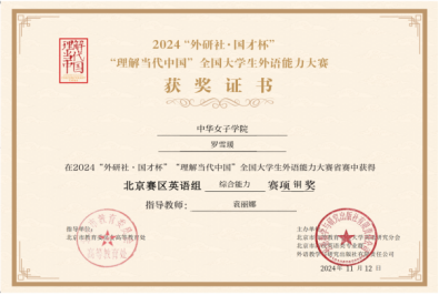 英语组综合能力北京赛区决赛 | 罗雪瑗 | 北京市铜奖 | 汉语国际教育 | 2022 | 本科生 | 袁丽娜 |