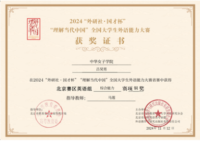 英语组综合能力北京赛区决赛 | 宗秀蕾 | 北京市铜奖 | 会计学 | 2023 | 本科生 | 李立新 |