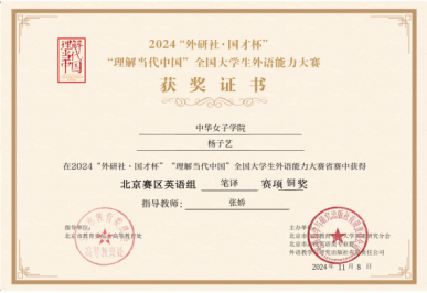 英语组笔译北京赛区决赛 | 杨子艺 | 北京市铜奖 | 应用心理学 | 2023 | 本科生 | 张娇 |