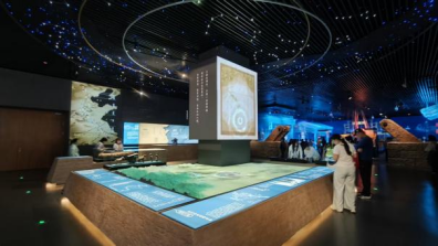 大运河博物馆以“运河之舟”为设计理念,建筑南侧形似巨帆,北侧如厚重船体,270米水街长廊串联起漕运文明的千年图景。通过科技与文物交融的展陈方式,生动呈现了大运河的发展脉络、人文景观以及与北京城共存共生等多元内容,构建起千年文脉的时空对话。师生们通过观看全流域数字沙盘,直观了解到古代水利工程的智慧;在《不止运河》沉浸式体验展中,借助VR技术穿越时空,沉浸式赏析杭州至通州的千里航程,感受沿岸四季变迁与市井繁华。