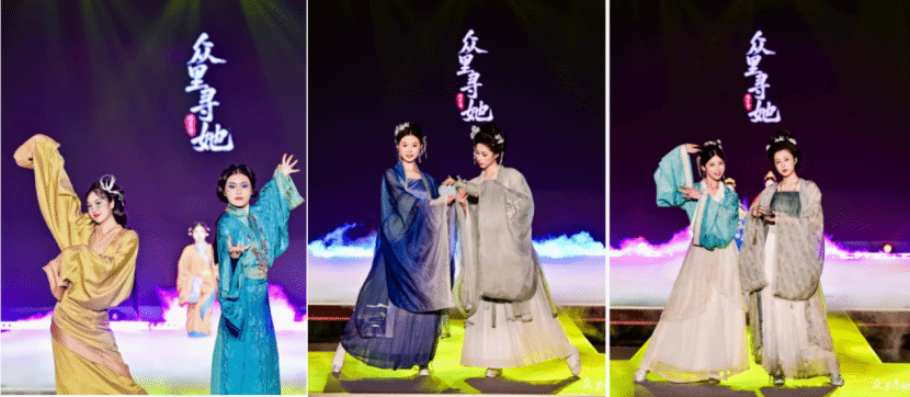 本次展演共选择了流落海外的18件文物,涵盖宋代瓷器、青铜器、女史箴图以及明清时期的各类文物,以其历史背景、工艺特点、现存状况为基础,结合文物内涵及造型元素,以文物拟人视角将存放在海外博物馆的中国文物生动演绎。与以往服装表演T台秀不同的是,本次演出结合了情景演绎、舞蹈身韵、形体表现及语言艺术表达,创造了一种T台情景秀表演的新形式。