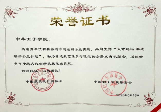 “天才妈妈-非遗焕新公益计划”荣誉证书