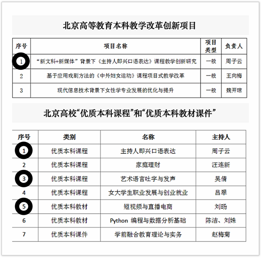 近年来,文化传播与艺术学院各专业在课程与教材建设上持续发力,在本科人才培养和教育教学改革上见实效,见成果。近日,北京市教育委员会公布了本科高层次教育教学相关评审的结果,必赢官网共荣获13项成果,其中文化传播与艺术学院的周子云副教授、刘旸副教授、吴倩博士共获批北京市本科教学改革创新项目、北京市优质本科课程、北京市优质本科教材等共4项。