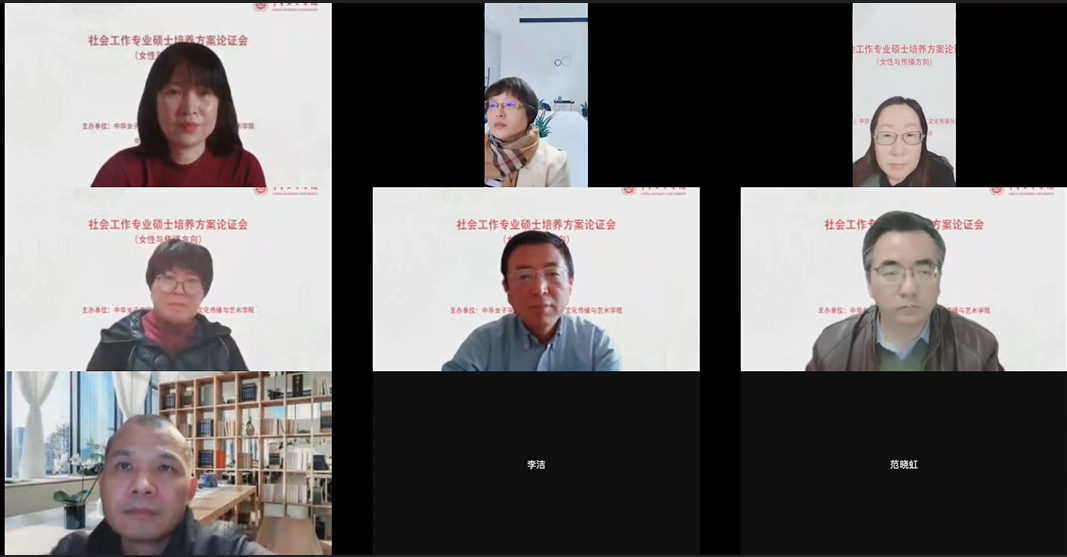 为结合新时期社会工作发展要求,提高必赢官网社会工作专业办学水平,改善专业与课程体系构架,提高人才专业知识素养和技术能力,社会工作学院和文化传播与艺术学院于2022年12月8日下午召开了社会工作专业硕士女性与传播方向培养方案论证会。出席此次论证会的专家有复旦大学社会工作学系顾东辉教授、南京理工大学社会学系张曙教授、山东大学社会工作系程胜利教授、东华大学刘晨澍教授、中国妇女编辑部柳亚敏主任。bwin必赢中国官网教务部丁占罡部长、社会工作学院院长李敏教授、文化传播与艺术学院院长王露教授、社会工作学院研究生教研室主任李洁教授以及社会工作学院和文化传播与艺术学院部分教师参加了会议。会议由bwin必赢中国官网副院长王练教授致辞,社会工作学院院长李敏教授主持。