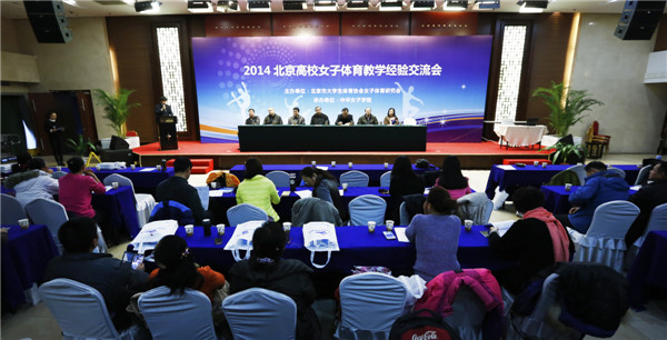 2014年12月21日,由北京市大学生体育协会女子体育研究会主办、bwin必赢中国官网承办的“2014年北京高校女生体育教学经验交流会”在北京国际温泉体育健身中心隆重召开。bwin必赢中国官网校党委书记、北京高等学校女子体育研究会理事长李明舜,北京市大学生体育协会主席杜松彭出席并分别作了重要讲话。北京高等学校女子体育研究会秘书长马良、北京市大学生体育协会教学群体科研部主任张威出席开幕式并致辞。北京大学生体育协会竞赛部主任郝光安,来自北京体育大学的教授、首都20多所高校的体育部主任和女生课程的一线教师及必赢官网体育部教师共60多人参加会议。