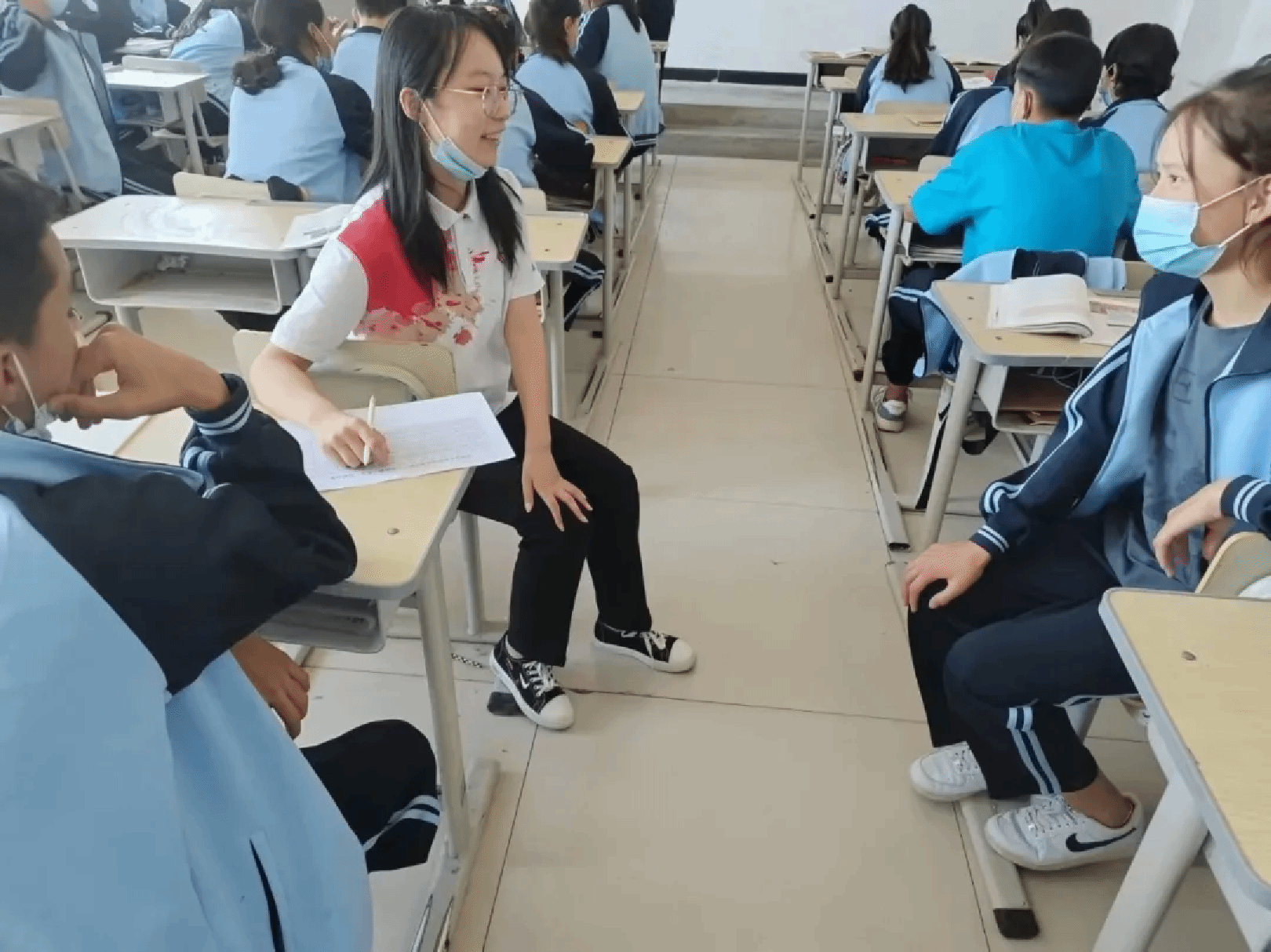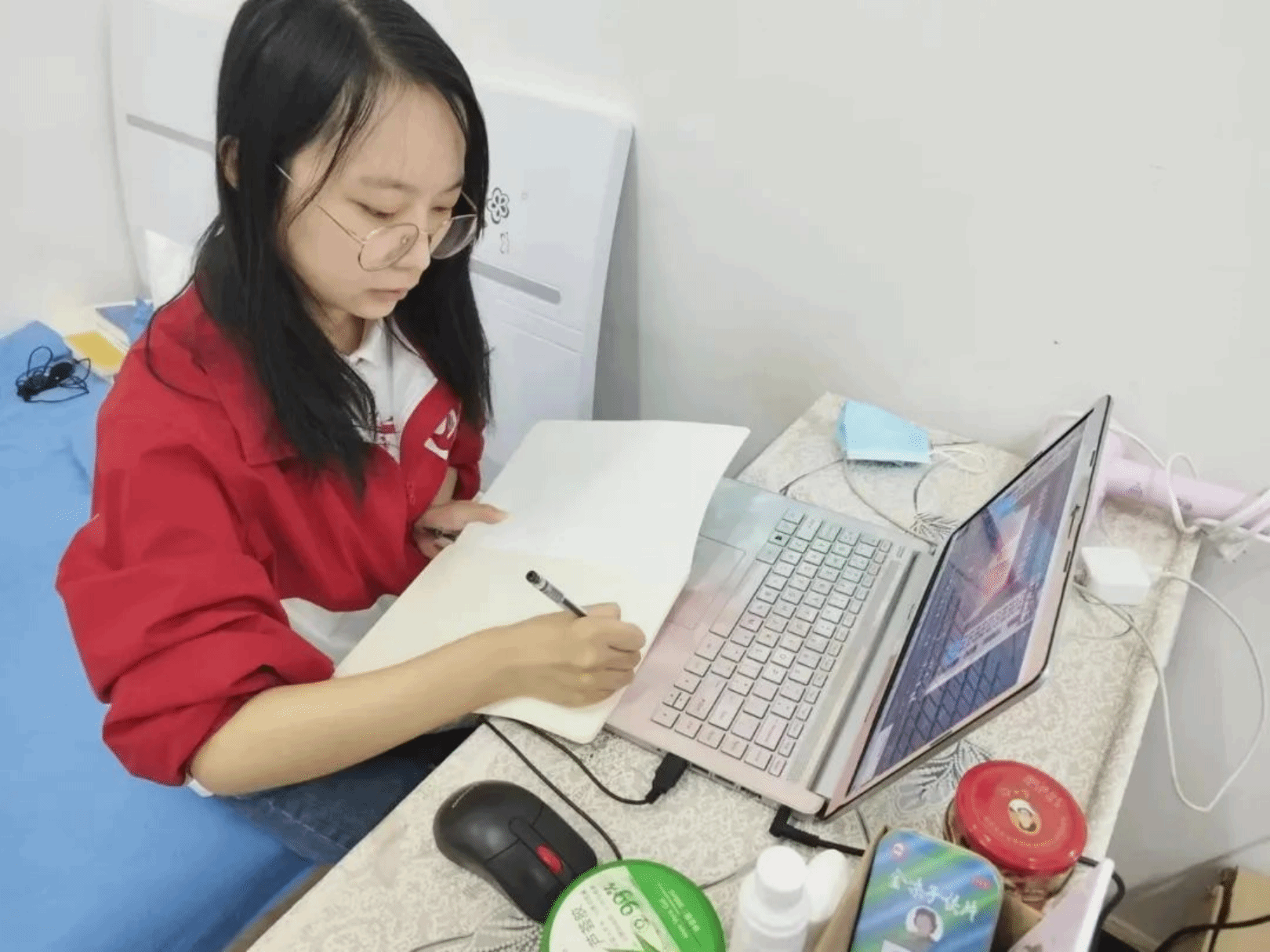 班级里的 57 名学生皆来自焊接班和机电班,文化基础较为薄弱,自我约束能力欠佳,常常在学习短短几分钟后便开始分心走神。学生们缺乏教材与笔记本,课堂上讲话、打瞌睡等现象屡见不鲜,这些问题沉甸甸地压在她的心头。她积极寻求解决之道,一方面,她虚心向校内优秀教师请教,深入课堂听课学习,汲取教学和管理的宝贵经验;另一方面,她重拾《教育心理学》《发展心理学》等专业书籍,潜心钻研;《快速处理学生问题的 52 个方法》被她反复研读,直至烂熟于心;几本政治教材在她的不懈努力下被逐一攻克……在关心学生学习的同时,她也无微不至地关怀着学生的生活。为生病的学生送药、准备早餐,陪同学生就医。在点滴相处中,她与学生之间的距离逐渐拉近,学生们望向她的目光日渐被尊重与喜爱填满。于是,在许多个自习的晚上,当其他班级喧闹不止时,她的班级却能全神贯注地投入学习。她的学生最终在直升专面试中均取得了优异的成绩。