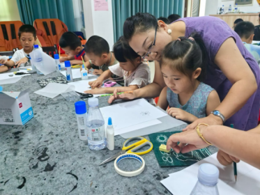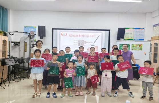 马丽娜博士在连城县栗园社区和长汀县腾飞社区分别组织《纸版画制作与印刷》《儿童自由水墨画》亲子美育活动,从传统技艺的历史溯源到拓印的创意实践,孩子们在印刷与拓印、水墨与颜料的交汇中积极投入活动,表现出了高度认可和由衷喜爱。
