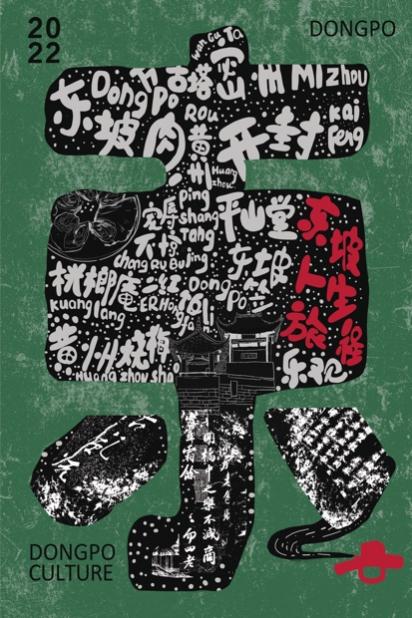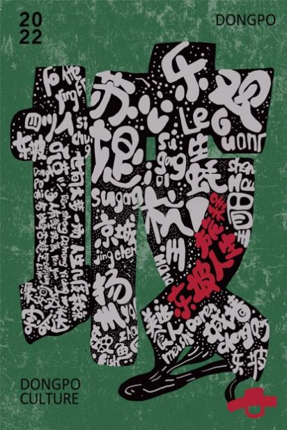 设计理念:作品以东坡二字为核心,运用拼贴的手法,阐述东坡人生旅程中的一些重大事件。通过挖掘北宋文豪苏东坡在文学、艺术、生活态度、人生境界等方面的当代价值,利用设计语言传达东坡文化的精神内涵,促进海南文旅产业高质量融合发展。