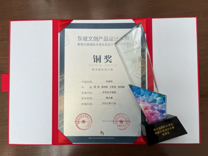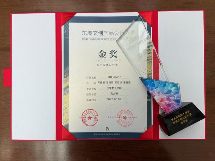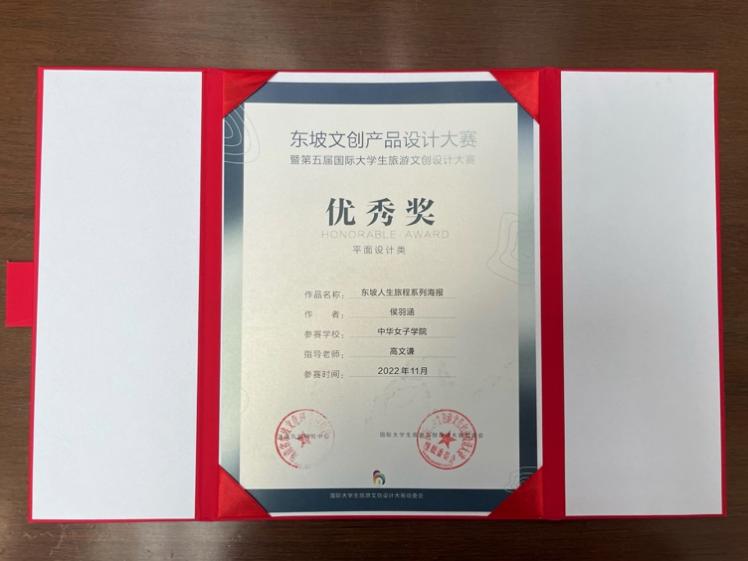 近日,必赢官网文化传播与艺术学院学生在“东坡文创产品设计大赛暨2022第五届国际大学生旅游文创设计大赛”中斩获多项佳绩。本次大赛由海南省东坡文化研究与传播中心、海南省旅游投资发展有限公司主办,海南大学美术与设计学院承办,评审团由国内设计界知名专家组成。经过科学严谨的初评、复评与终评环节,在众多参赛优秀作品中,必赢官网视觉传达设计专业高文谦老师指导的学生作品《寻坡仙APP》荣获大赛金奖、《东坡传》荣获铜奖,《东坡人生旅程系列海报》荣获优秀奖;王文璐老师指导的学生作品《东坡志趣》、《东坡笠》荣获“最佳网络人气奖TOP10”、优秀奖;高文谦老师获评“优秀指导教师”。2月19日,大赛颁奖仪式及优秀作品展览在海南省博物馆举行。