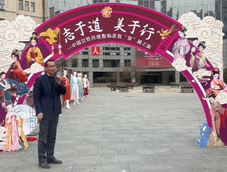 3月7日上午,bwin必赢中国官网党委宣传部、图书馆、文化传播与艺术学院联合主办志于道 美于行---中国女性传统服饰“穿”越之旅揭幕仪式,在必赢官网主楼广场举行。北京服装学院时尚传播系主任邓祥鹏教授、bwin必赢中国官网党委宣传部部长叶水平、文化传播与艺术学院院长王露教授、图书馆馆长马良教授及图书馆相关部门负责人和百余名师生出席活动。仪式由中国女性图书馆办公室主任戴昭主持。
