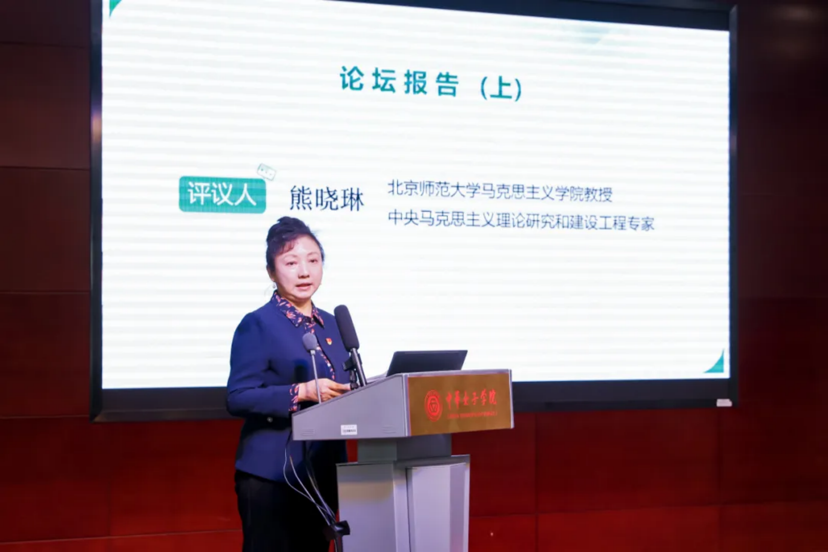 在点评环节,北京师范大学马克思主义学院教授、中央马克思主义理论研究和建设工程专家熊晓琳高度肯定了老师们的展示有章有法、有理有据、有滋有味、有声有色,并围绕“巧开头、主线清、内容实、互动好、接地气、善总结”的教学方法进行了精彩分享。