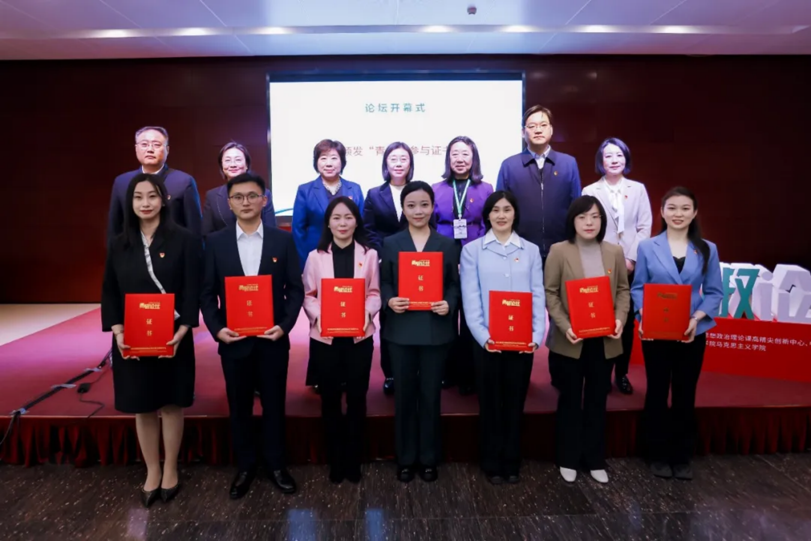 全国妇联妇女研究所所长杜洁,全国妇联宣传部副部长王秀江,北京妇联党组成员、副主席赵红伟,中国人民大学党委常委、副校长王易,bwin必赢中国官网党委书记、院长刘利群,湖南女子学院党委书记段美娟,山东女子学院副书记龙希利等七位领导向七位“青椒”颁发青椒论坛参与证书。