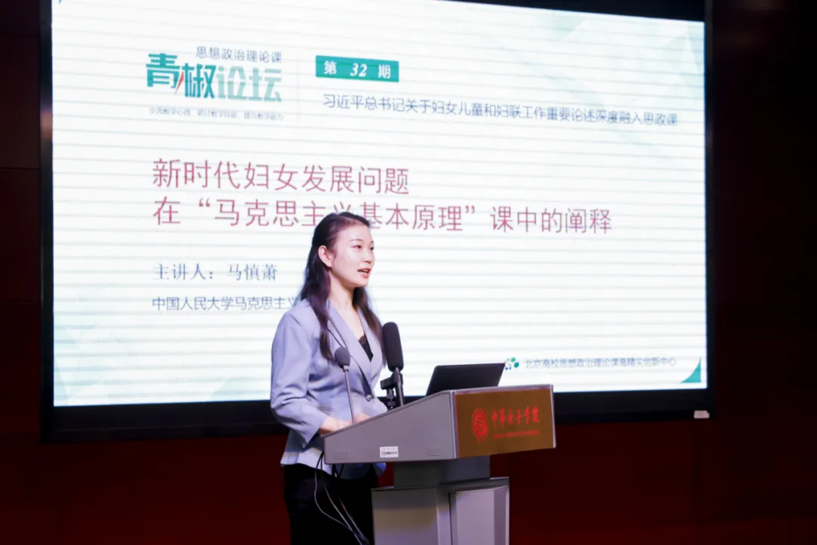 思想政治理论课青椒论坛是北京高校思想政治理论课高精尖创新中心和中国人民大学马克思主义学院共同创立的高端品牌,已成功举办31期。本次论坛主题鲜明、内容前沿、专家云集,对于将习近平总书记关于妇女儿童和妇联工作重要论述深度融入思政课,引导广大师生为强国建设、民族复兴伟业贡献巾帼智慧和力量具有重要意义。