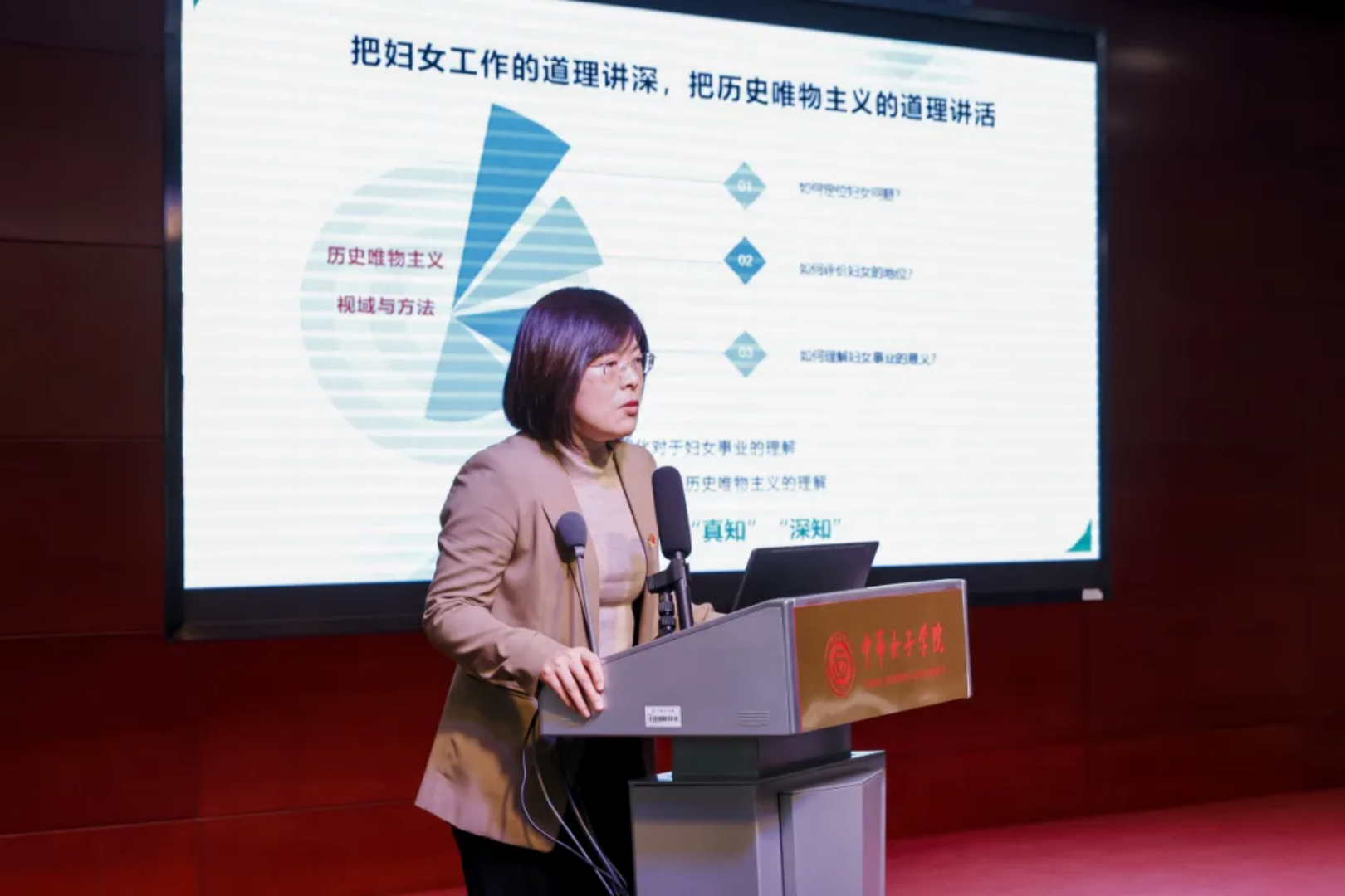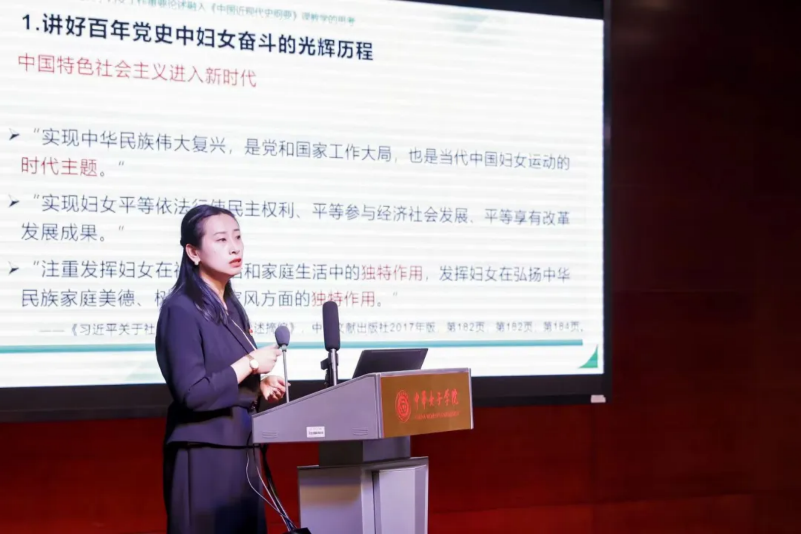 中国妇女十三大代表、教育部青年长江学者、华东师范大学马克思主义学院闫芳洁教授展示了如何将习近平总书记关于妇女工作重要论述深度融入唯物史观专题的教学设计。