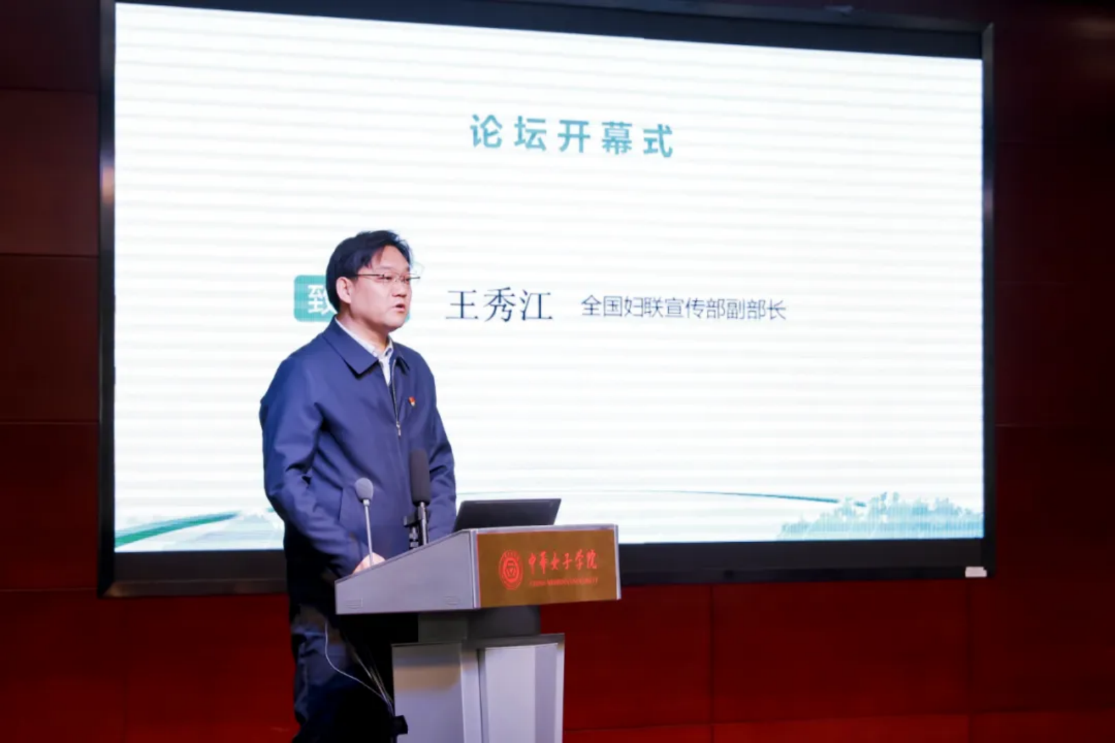 在开幕式上,全国妇联宣传部副部长王秀江对论坛召开表示祝贺,指出在全国两会召开、“三八”国际劳动妇女节之际,研究探讨如何将习近平总书记关于妇女儿童和妇联工作重要论述融入思政课,恰逢其时、意义重要,这是落实坚持不懈用习近平新时代中国特色社会主义思想铸魂育人这一首要任务的必然要求,也是做好大学生思政课的应有之义。