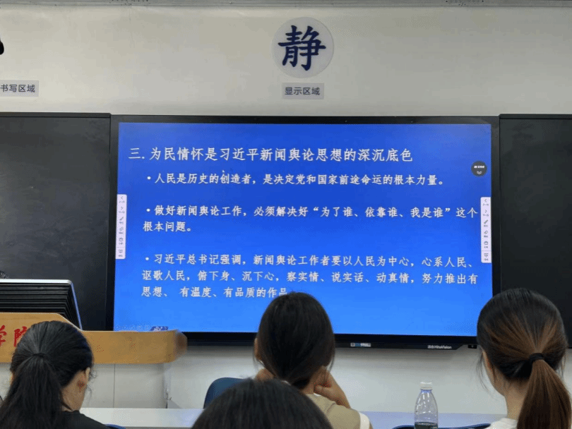 8月29日,2022级网络与新媒体一班进行了“习近平总书记新闻舆论工作重要论述”的开课第一讲。刘利群院长带领网新专业师生,以饱满的热情和认真的态度深入学习了这“开学第一堂舆论课”。
