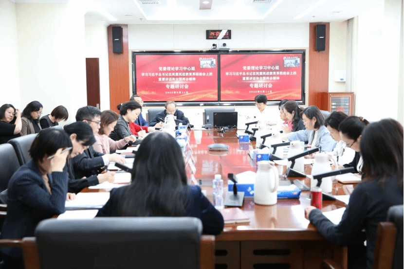 学校党委副书记、院长刘利群传达习近平总书记在民盟民进教育界联组会上的重要讲话和2025年全国两会精神,党委常委、副书记赵浩、副院长薛小丽、副院长韩燕、副书记兼纪委书记邢慧丽、组织部长张霞、宣传部长叶水平分别结合工作实际做了交流发言,党委常委、副院长周应江、马克思主义学院直属党支部书记王欢做重点发言。