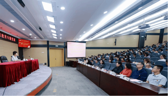 刘亚玫围绕深入贯彻落实党中央关于开展中央八项规定精神学习教育的决策部署,聚焦深刻学习领会习近平总书记关于加强党的作风建设的重要论述,以“推动学习教育走深走实,以作风建设新成效推动学校高质量发展”为主题,为参会师生党员、干部讲授党课。
