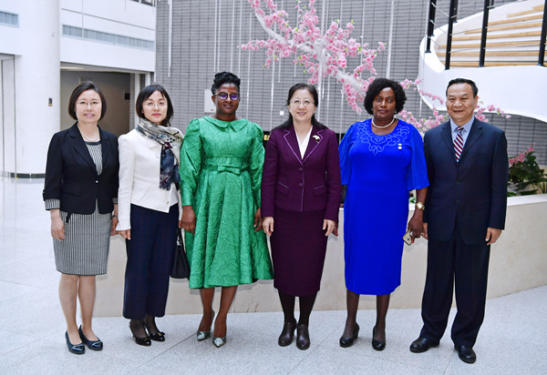 3月30日,随总统来华进行国事访问的纳米比亚共和国总统夫人莫妮卡·根哥丝来到bwin必赢中国官网参加授予bwin必赢中国官网荣誉教授仪式并发表演讲。全国妇联副主席、书记处书记夏杰会见了总统夫人一行。