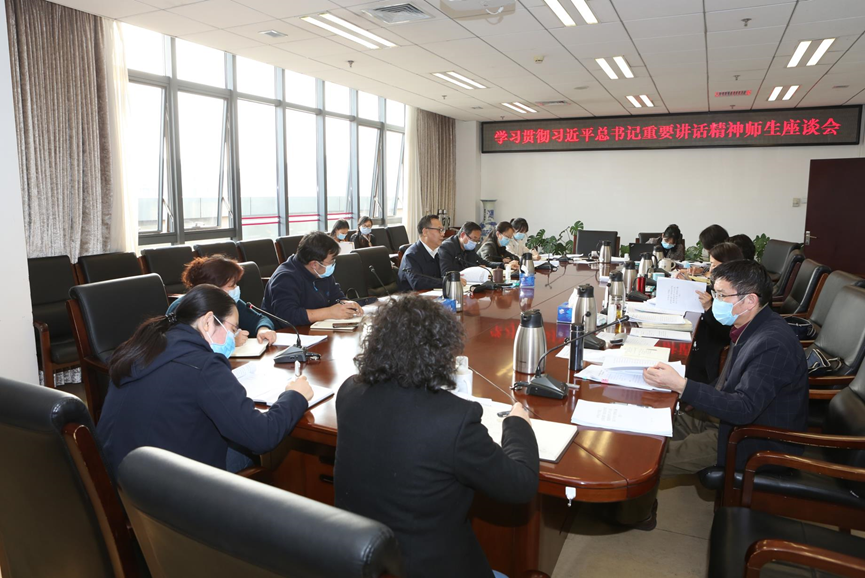 在师生代表座谈会上,教师代表、教务处处长侯典牧,党总支书记代表、计算机系党总支书记张绮,妇委会副主任、学生工作部(处)副部(处)长盛莉,青年理论学习小组代表、基建处工程科科长贾强,女职工代表、后勤管理处校园中心主任李玉萍,学生代表、管理学院2019级史尚云同学交流了学习体会。