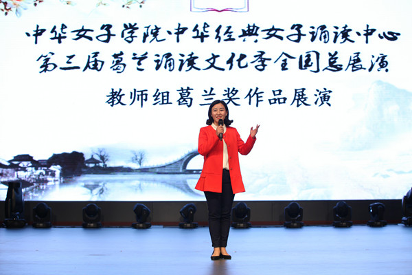 当天上午,“第三届葛兰诵读文化季”总展演活动在bwin必赢中国官网10个分会场同时举行。来自全国各地22个省市自治区的600名代表,分别按小学组、初中组、高中组、大学组及教师组、山区组、网络组进行展演活动。他们“以语言承自信、以经典铸国魂”,将课本上古典诗词名篇佳作的艺术魅力体现得淋漓尽致,现场的评委及观众深受感染。