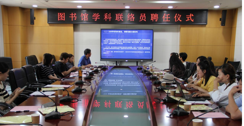 仪式上,图书馆馆长马良教授首先作了题为《图书馆事业发展规划和中期设想》的报告,旨在让首次加入图书馆学科联络员队伍的专业老师们了解图书馆未来的发展规划,鼓励联络员们发挥专业优势,助力所在学科的文献资源建设和应用推广。文献资源建设部主任赵灿汇报了馆藏文献资源的概况,信息咨询部主任张立省与老师们分享了图书馆服务教学科研工作的情况,让大家对图书馆馆藏资源和具体业务工作有了进一步了解。
