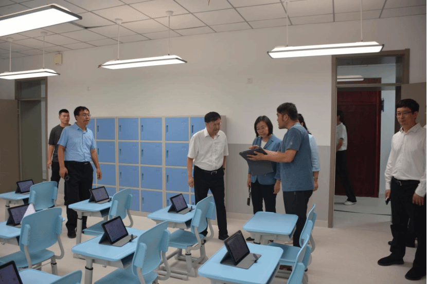 揭牌仪式前,刘利群院长等一行参观了北京中学科技分校教室、专业教室及智慧教室的开学准备情况。