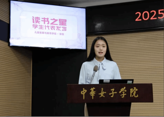 来自儿童发展与教育学院的张悦作为学生读书之星代表上台发言,讲述了在参与图书馆系列活动过程中的独特收获与深刻体会,并分享了阅读如何滋养心灵,以及阅读与活动带来的成长感悟。