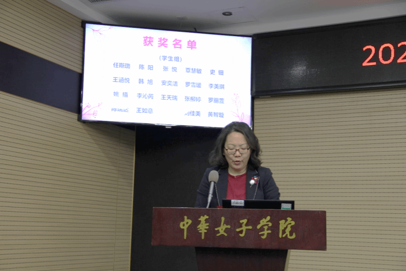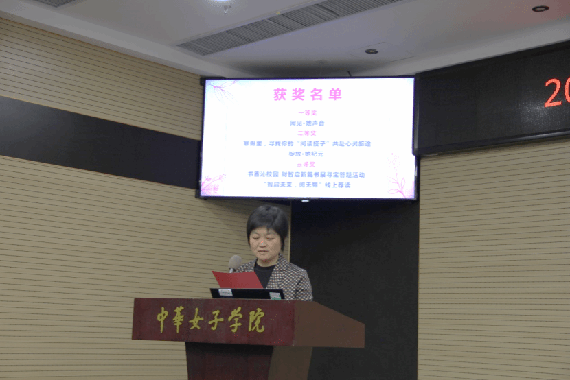学生工作部部长马瑜宣读了由图书馆联合学工部共同举办的女院“悦”读策展人活动获奖学生名单,校团委书记盛莉、教务部部长丁新娅老师分别宣读了2024年度女院学生读书之星获奖名单和教师读书之星获奖名单。