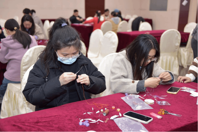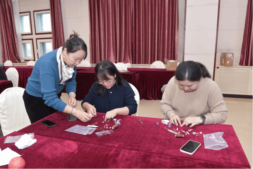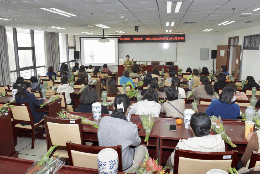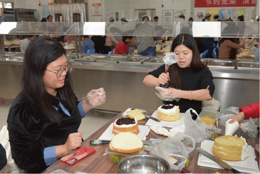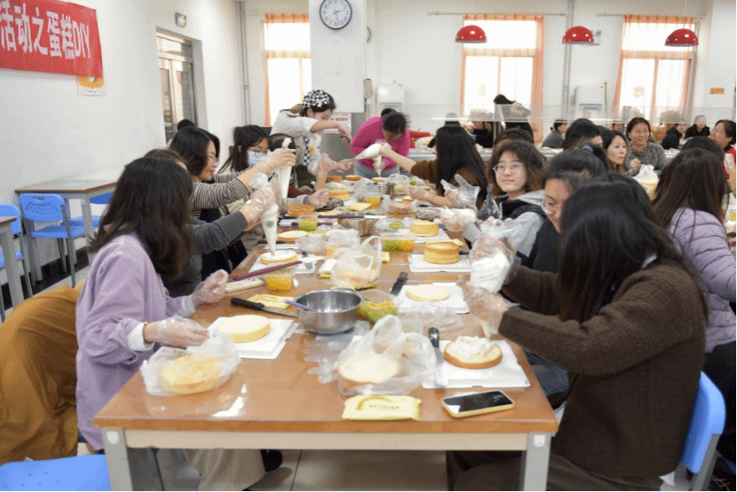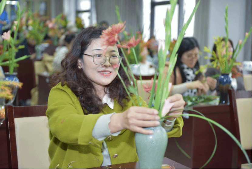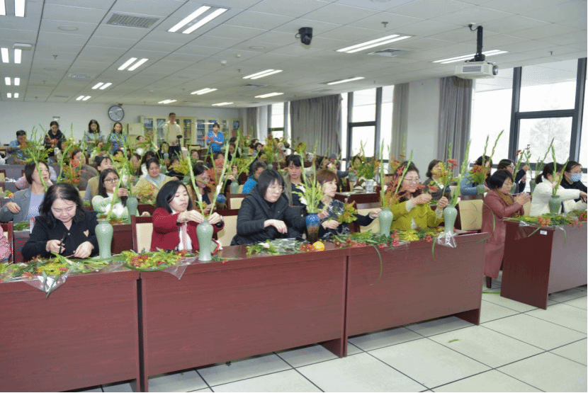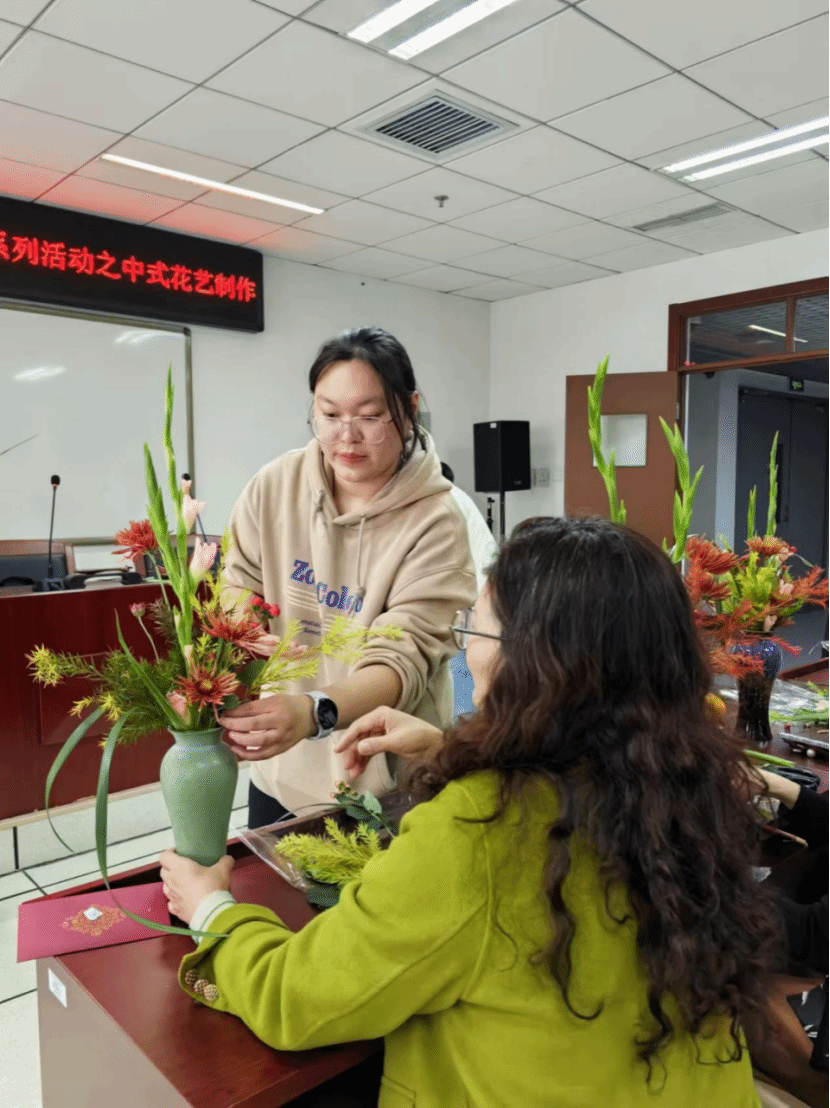 11月13至15日,教职工兴趣汇系列活动——非遗缠花、蛋糕DIY、中式插花持续举办。一根金属丝一张纸片搭建出骨架,再用蚕丝线一圈一圈地缠绕上去,做出一片片有自然光泽的“花瓣”,再逐片组合成花,各种姿态极尽绽放。这种用丝线缠绕而成的花饰,被称为缠花,是一种流传已久的传统民间技艺制品。涂抹奶油、裱花装饰、摆放水果……在专业老师的示范指导下,大家很快掌握了制作的步骤和诀窍,纷纷化身“西点大师”,一展身手,体验着自己动手DIY的乐趣。中式插花的精髓是追求花材的自然形态之美,赋予植物以独特的精神和内涵。活动不仅展现了教职工多才多艺的一面,更是在忙碌的教学之余,搭建起一座心灵交流与创意碰撞的桥梁。老师们有的低头独立创作,有的三五成群热烈讨论,各式各样的手工材料在欢声笑语中经过教师们的巧思妙手变成了精美的作品。