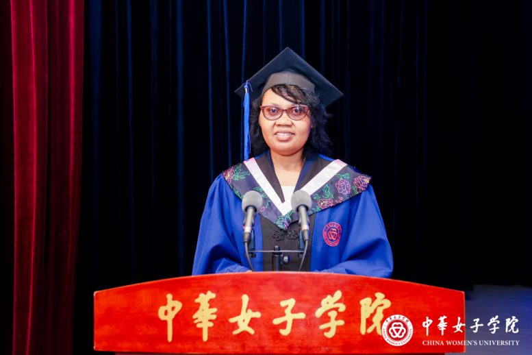 教师代表马克思主义学院任琳、毕业生代表西部计划志愿者孙芳、援外学历学位教育项目硕士研究生代表姆维泽拉•露丝先后发言。