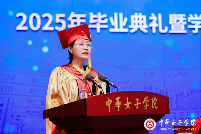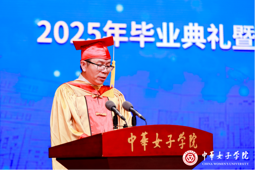 刘利群向圆满完成学业的全体毕业生表示祝贺,她希望同学们要怀家国之情,勇赴时代之约,赓续女院红色血脉,将个人理想熔铸民族复兴征程;砺精进之志,稳踏万里征程,恪守“博学不穷,笃行不倦”之训,持续构建可升级的认知体系,不断实现自我的超越;绽自信之光,绘就出彩人生,永葆独立之精神、自由之思想,以优雅从容之姿、刚柔并济之力在民族复兴的伟大征程中书写属于新时代女性的篇章。
