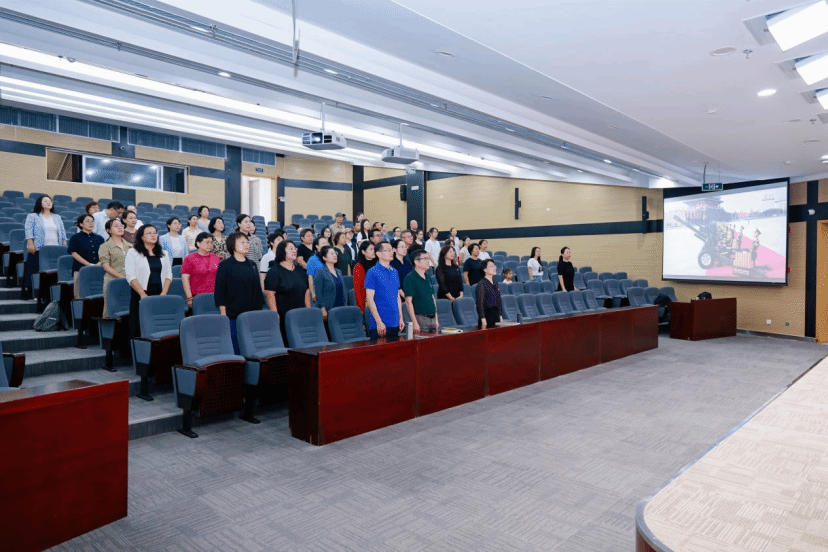 学校组织在校师生在教图楼第一报告厅集体收看纪念中国人民抗日战争暨世界反法西斯战争胜利80周年大会直播,通过大屏幕共同见证了这场气势恢宏的国家盛典。各党总支、党支部组织未进校教职工通过电视、网络、广播等其他方式收听收看大会直播。广大师生无一不被伟大的爱国主义精神和抗战精神所感动,为伟大的中国人民而自豪!
