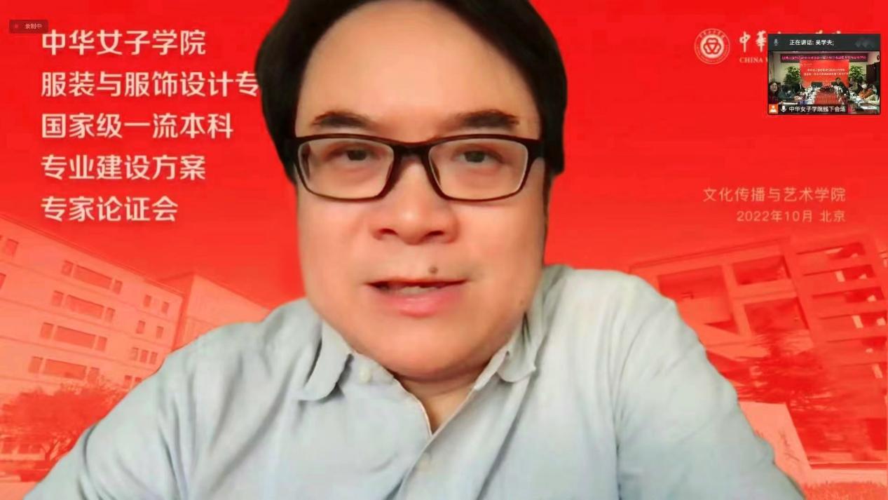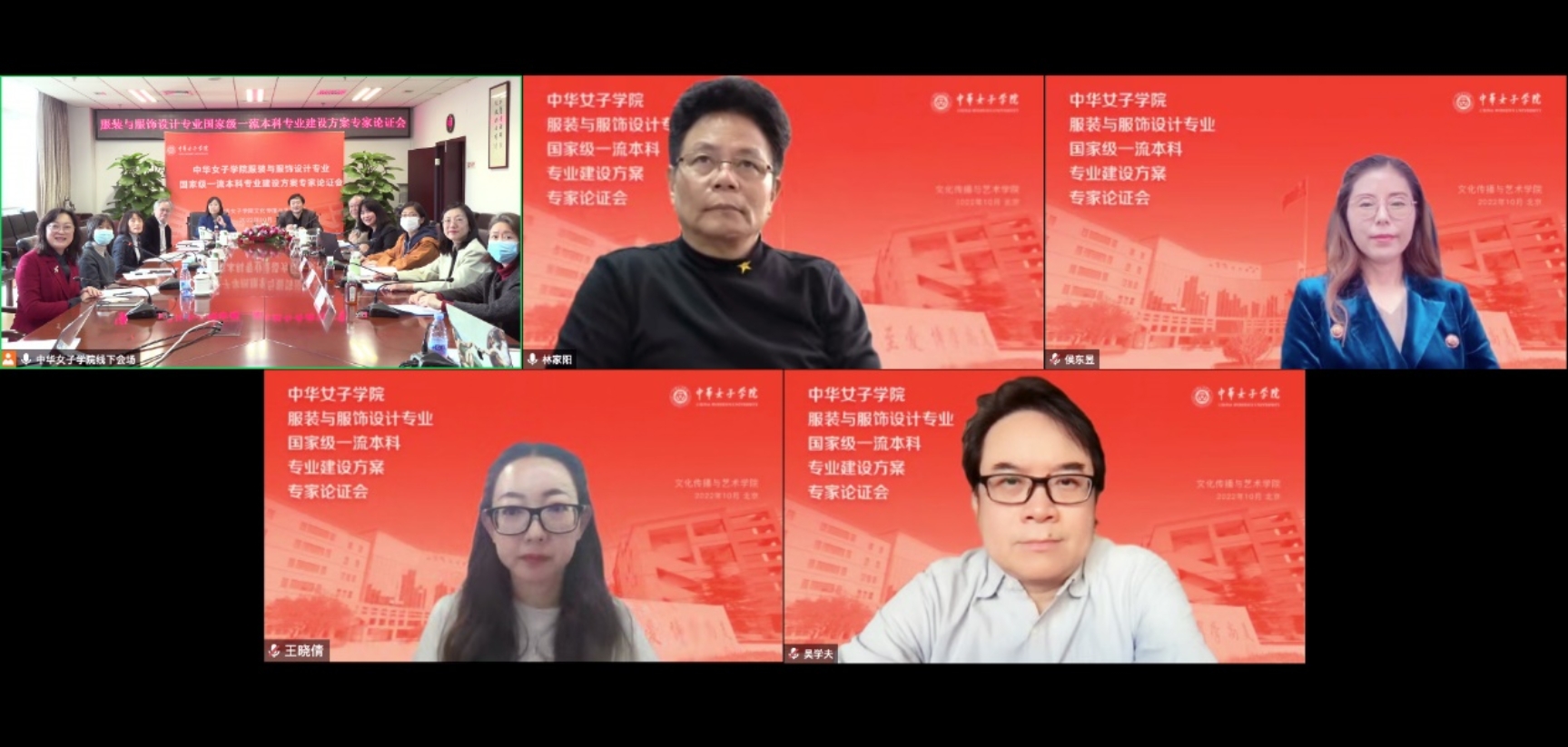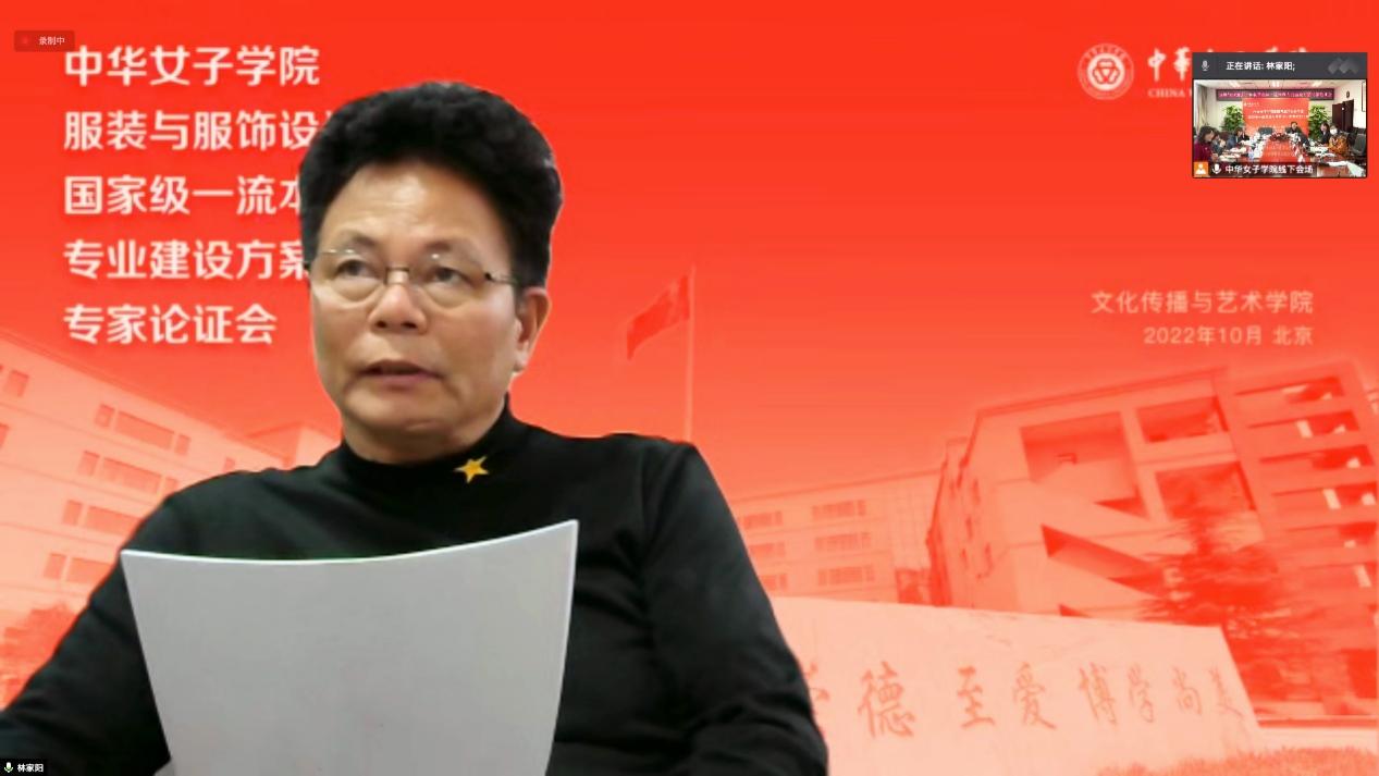 线上出席本次论证会的有:同济大学设计艺术研究中心主任、教授、博士生导师林家阳;中国传媒大学艺术设计研究中心主任、教授、硕士生导师吴学夫;河北科技大学纺织服装学院副院长、教授、硕士生导师侯东昱;李宁(中国)体育用品有限公司 王晓倩。