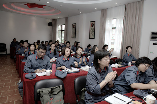 开班仪式上,全体学员身着红军军服,整齐划一、激昂洪亮的奏唱国歌,校工会常务副主席赵燕萍在开班仪式讲话中谈到:井冈山是中国革命的摇篮,是没有围墙的革命历史博物馆,是我们接受革命传统教育、陶冶情操、净化心灵、提升境界的生动课堂,希望学员们通过亲身体验式学习有所思、有所悟、有所获并学以致用,同时对党员教师提出要与当前开展的“两学一做”学习教育结合起来。