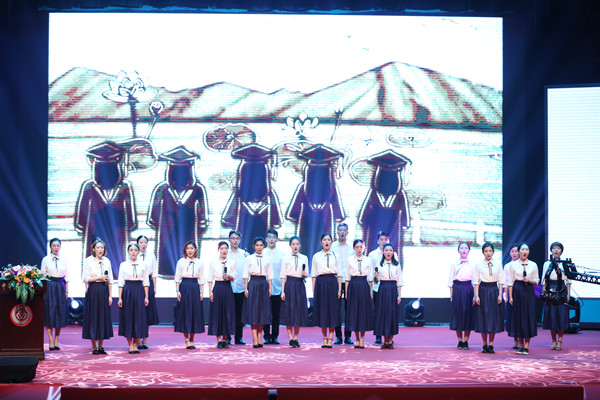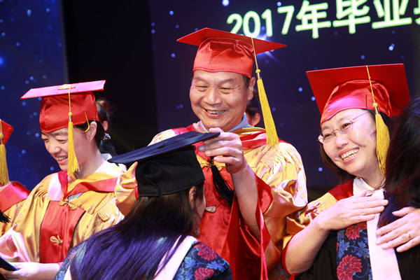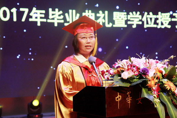 怀着感恩的心,毕业生在典礼上向校领导、导师、家长献上鲜花,李明舜代表学校接受了毕业生的感恩之情。全体毕业生面向校旗庄严宣誓,“一生忠诚于祖国和人民,为中华民族复兴奋斗终身!”的誓言响彻整个会场。学妹们以莲寄情,将经典诵读《爱莲说》送给开启人生新篇章的学姐们;2017年北京市大学生舞蹈节获奖作品《我想对你说》祝福学姐们追寻自己的梦想,乘梦翱翔。