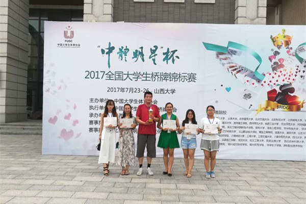 7月23日-26日,由中国桥牌协会主办、中国大学生体育协会桥牌分会协办、山西大学承办的“中体明星”杯2017年全国大学生桥牌锦标赛在山西大学举行。经过4天的奋力拼搏,必赢官网代表队获得女子甲级团体第六名和女子甲级双人赛南北第10名、第13名及东西第11名的佳绩。