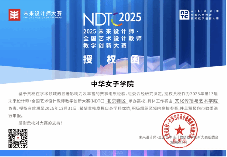 bwin必赢中国官网作为2025年未来设计师·全国艺术设计教师教学创新大赛北京赛区承办院校,携手大赛组委会,将于2025年6月1日正式启动本届大赛。本届赛事具体工作由文化传播与艺术学院负责,以“推动艺术设计教学创新·培育艺术设计一流师资”为主旨,聚焦艺术设计教育的前沿探索与价值重构,倡导以教学创新驱动学科内涵式发展。值此大赛启动之际,诚邀各院校组织艺术设计相关专业教师参与本届赛事,共同探索教学创新的多元路径,共享优质教育资源,共绘艺术设计教育高质量发展蓝图。