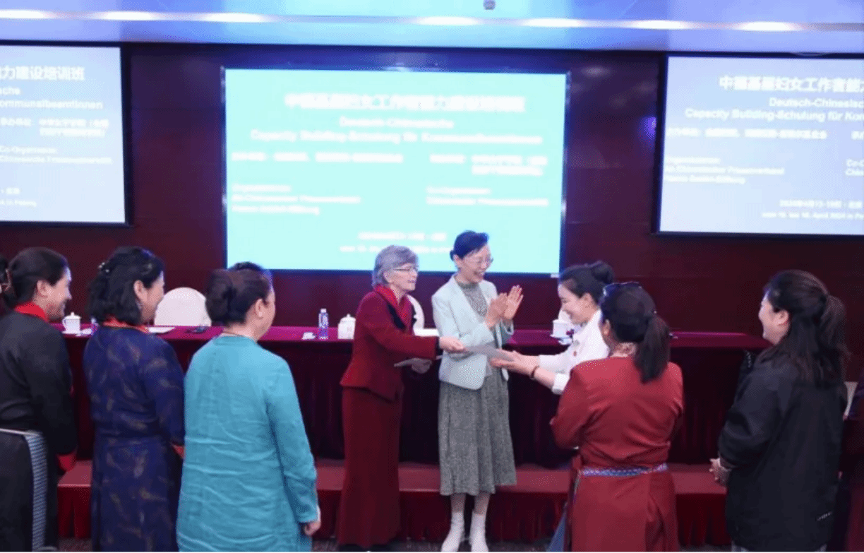 林怡副主席在结业式致辞中指出,中德两国人民有悠久的交往历史和深厚友谊。自1972年建交以来,两国各领域务实合作成果丰硕。几天前,习近平主席同来华访问的朔尔茨总理深入交流,共同擘画中德关系未来发展蓝图。近年来,全国妇联将加强高素质专业化妇联干部队伍建设作为重点工作之一,与德国汉斯·赛德尔基金的合作逐步面向中国中西部欠发达地区的县级妇联主席开展培训。