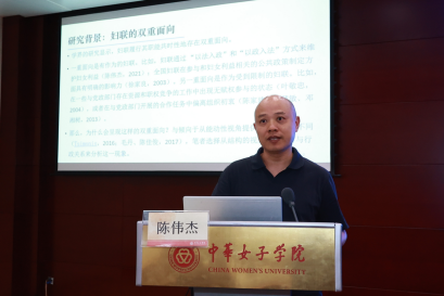 在“妇联组织与妇女工作创新发展”论坛中,bwin必赢中国官网社会工作学院陈伟杰副教授、黑龙江省妇女研究所王茜助理研究员、bwin必赢中国官网妇女发展学院刘子一讲师、河北经贸大学马克思主义学院尼莎讲师、bwin必赢中国官网妇女发展学院李慧波讲师分别作了主题报告。bwin必赢中国官网妇女发展学院副院长王向梅教授主持了该主题论坛。bwin必赢中国官网韩贺南教授与bwin必赢中国官网马克思主义学院王涛教授参与该论坛的与谈环节。