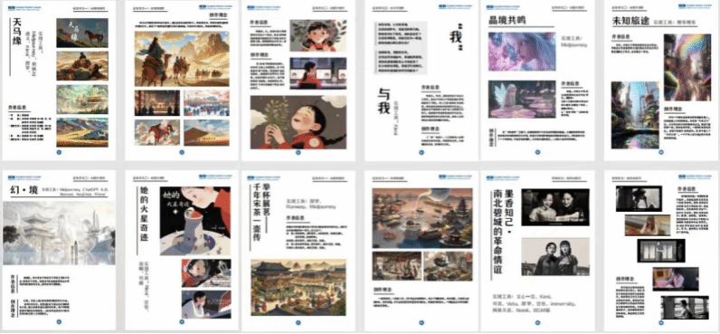 来自中国传媒大学的施媛媛团队分享了原创AI叙事影像作品《天马缘》及其背后的创作方式与理念。团队结合多种创作工具,整合人工与AI创作资源,呈现出了一幅古今交映的唯美画卷,重现了丝绸之路的繁荣景象。青年古筝演奏家郑安娜,通过她的AI作品《Unitea》,探讨了AI技术与传统筝文化的融合,强调了AI在音乐创作和演奏中的新机遇,展望了AI技术在音乐艺术发展和文化传承中的潜力,并呼吁共同拥抱AI与传承文化的结合,共创美好艺术世界。北京服装学院的潘瑞欣展出了她的作品《幻·镜》,该作品以《红楼梦》中的“太虚幻境”为灵感,结合虚拟现实技术,探索现实与虚幻的界限。bwin必赢中国官网的郑景文呈现了她的作品《“我”与我》,通过AI文学创作模块探讨了人工智能的自我意识与人类情感的交织。北京科技大学机械工程学院本科生牟嘉霖的作品《她的火星奇迹》,利用AI技术辅助图片创作,讲述了一位女性在火星上的冒险故事,体现了女性在科学探索领域的重要作用和无限潜力。作品通过图文结合的方式,将观众带入一个科幻与现实交织的世界,探讨了人类对未知宇宙的好奇心和探索精神。