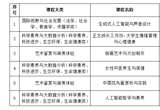 根据《bwin必赢中国官网通识教育课程模块管理实施方案》及《关于申报2025-2026学年第一学期通识教育课程(包括博雅课程和自由选修课程)的通知》要求,经教师个人申请、课程管理归属部门审核、教务部组织评审,共确定6门新开设课程,现予以公示: