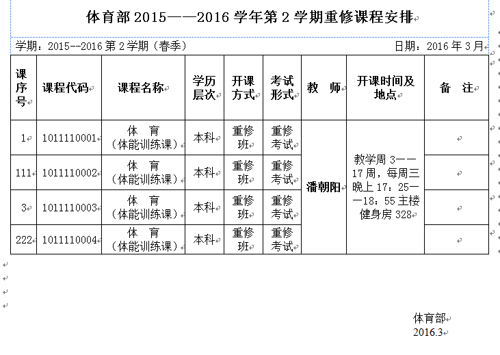 ??2015-2016学年第2学期体育部重修课程安排.doc