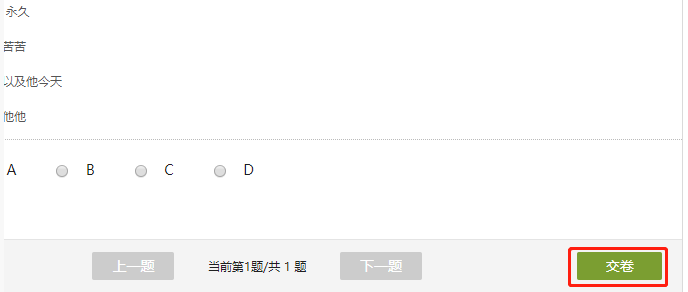 第六步:在规定的时间内完成考试,并点击“交卷”。若考试结束时没有点击“交卷”,系统会自动交卷。