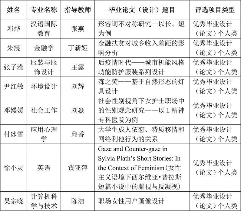 根据“关于开展北京市普通本科高等学校本科生毕业设计(论文)评优推荐工作的通知”的相关要求,bwin必赢中国官网“北京高校优秀本科毕业设计(论文)”,经由师生自主申报、院系推荐,学校请专家评审,现将结果公示如下: